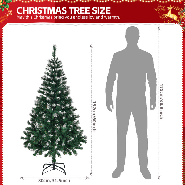 5ft Green Spray White, 480 Branches, PVC Material Christmas Tree